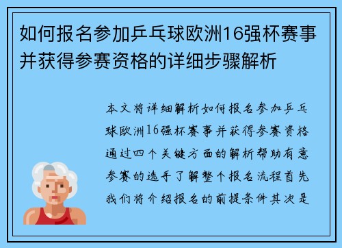 文章摘要:随着巴黎圣日耳曼(PSG)在欧洲足坛的崛起,尤其是其在欧冠赛场的不断努力与拼搏,俱乐部逐步走上了“新辉煌之路”。本文旨在分析巴黎圣日耳曼如何通过策略创新与实施方法的改进,重塑自身在欧洲冠军联赛中的竞争力。从四个核心方面入手,分别是球队战术革新、球员引进与团队管理、青训与人才培养、以及俱乐部文化塑造,深入探讨PSG如何通过这些策略的落地实施,力争夺取欧冠的荣耀。每个方面的分析不仅有助于理解PSG的现状,还能为其他俱乐部提供可供借鉴的经验。最终,本文总结了PSG的成功经验,并对未来的发展做出了展望。